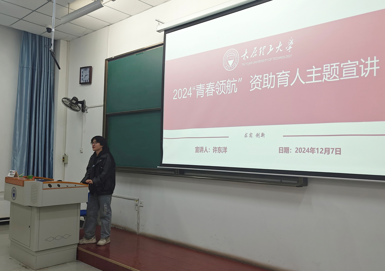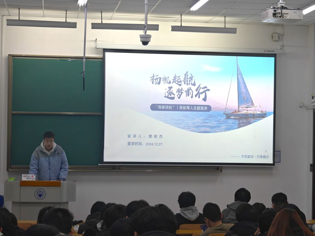 12月7日晚7:00,英国365集团公司在行远楼B123教室开展了2024“青春领航”资助育人主题宣讲活动。宣讲活动邀请了国家奖学金获得者樊明杰、科技创新类推免生赵晨瑀、国家励志奖学金、校优秀员工干部获得者许东洋、校三好员工获得者贾依晨作为主讲人。2023级全体同学参加,会议由院团委副书记许通陆主持。