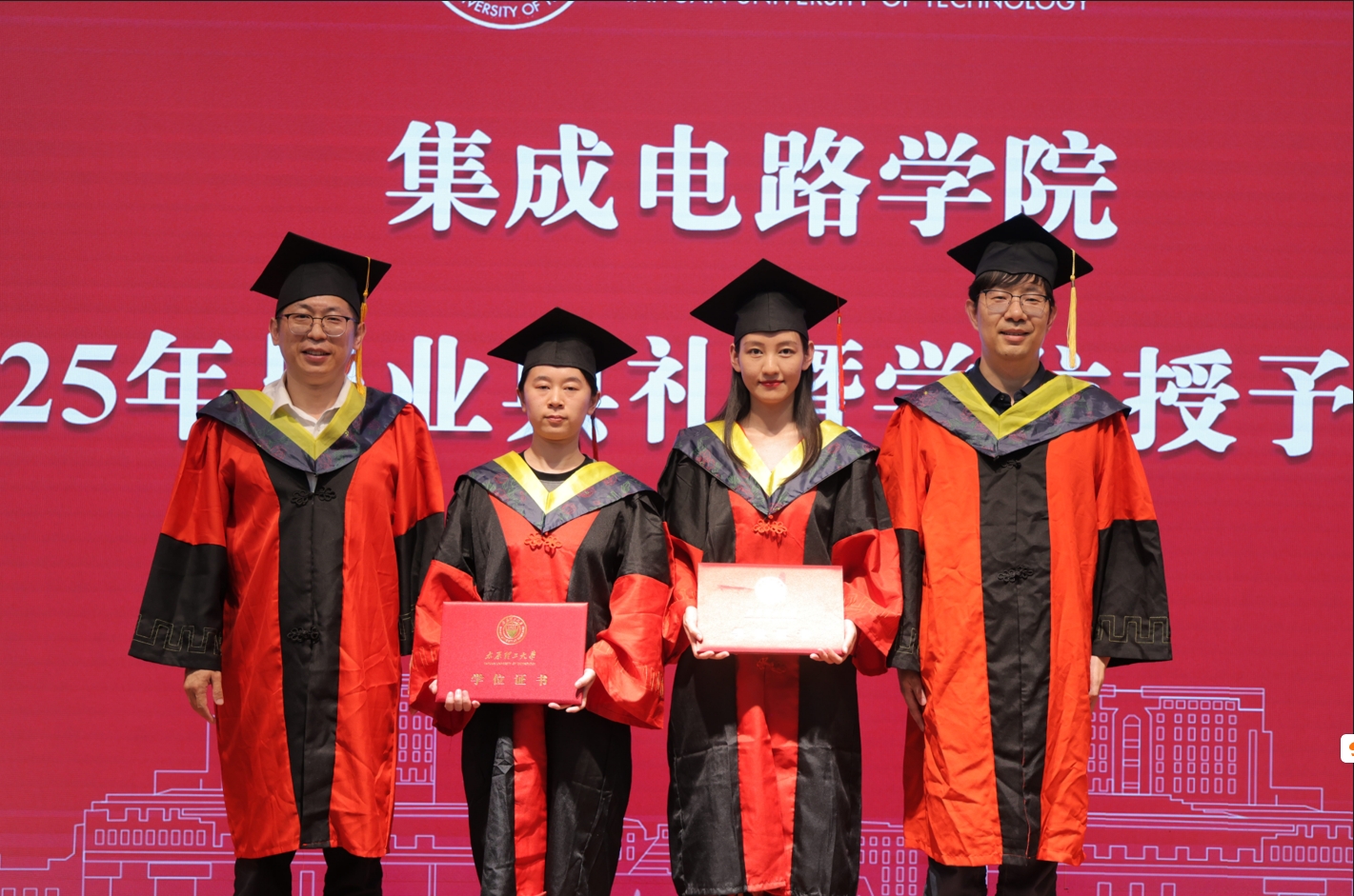 6月12日,2025年毕业典礼暨学位授予仪式隆重举行。集成电路公司党委书记巴大志、副书记钟明涛、副经理菅傲群、副经理冀健龙、学位评定分委员会成员秦林、张虎林、教师代表和2025届全体毕业生及家长代表出席典礼。大会由硕士毕业生牛晶慧、本科毕业生张轩旗主持。