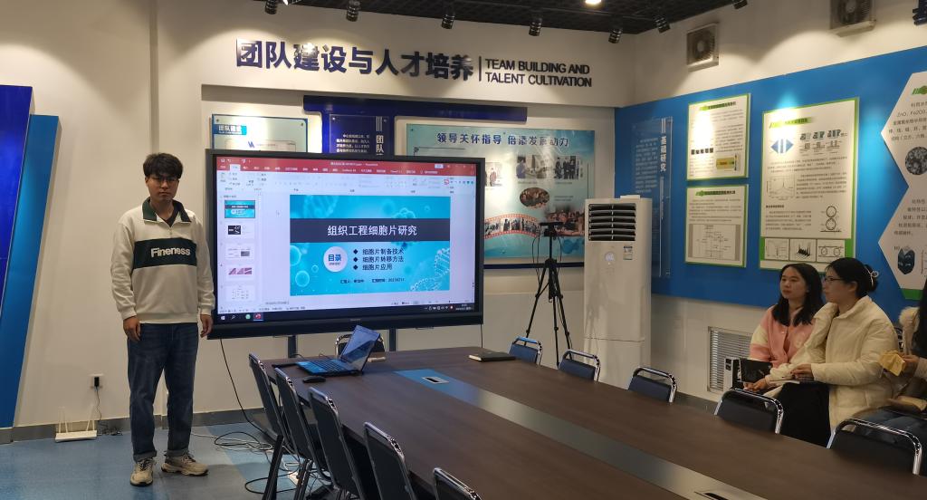 本次学术报告的汇报人为申治中博士生,汇报的内容是组织工程细胞片的相关研究。细胞片工程(CSE)是一种有效的无支架方法,可以在不使用蛋白水解酶的情况下收获完整的细胞片。CSE利用细胞与细胞之间紧密的相互作用,在不使用生物可降解的细胞支架的情况下,自主地构建微生物组织,并且可以采用基于干细胞的治疗方法来修复受损组织和器官。CSE使用温度响应性聚合物修饰的表面形成独特的无支架细胞片,该细胞片由一个或多个细胞层组成,这些细胞层保持有重要的细胞间连接、细胞外基质和关键蛋白,包括纤维连接蛋白、整合素、基质细胞衍生因子、肌球蛋白、血管内皮生长因子和肌动蛋白。细胞片不受支架材料相关的限制,相比支架细胞间通讯更紧密,避免了与植入相关的炎性免疫反应和由于快速降解导致的组织崩溃的可能性。另外,细胞片可以比游离在悬浮液中的细胞更有效地与传统支架材料组合。到目前为止,已有研究探索了细胞片在皮肤修复、骨再生、眼角膜、牙周、血管化肌肉等方面的应用。此次报告讲述了基于细胞片技术的当前制备方法、研究进展和应用,为下一步组织工程皮肤的构建提供了理论基础和新的思路。参会的各位老师、员工就学术报告相关内容进行了热烈的讨论。
