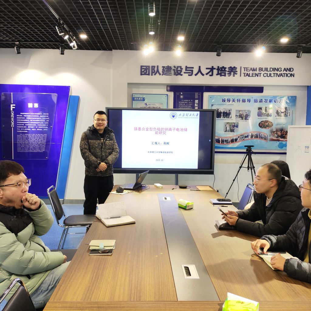 本次学术报告的汇报人为高辉老师,汇报的内容是锑基合金型负极的钠离子电池储能研究。高辉老师介绍了基于锑基合金负极钠离子电池的应用价值和发展瓶颈,从微观结构调控和合金成分设计两个方面系统地阐释了锑基合金型负极改性方法。最后结合储能电池工艺发展和国家需求对锑基钠离子电池的发展前景做出了展望。参会的各位老师员工就学术报道相关内容进行了热烈的讨论。